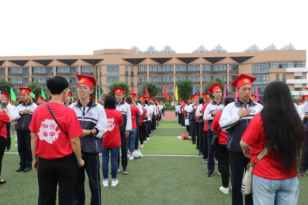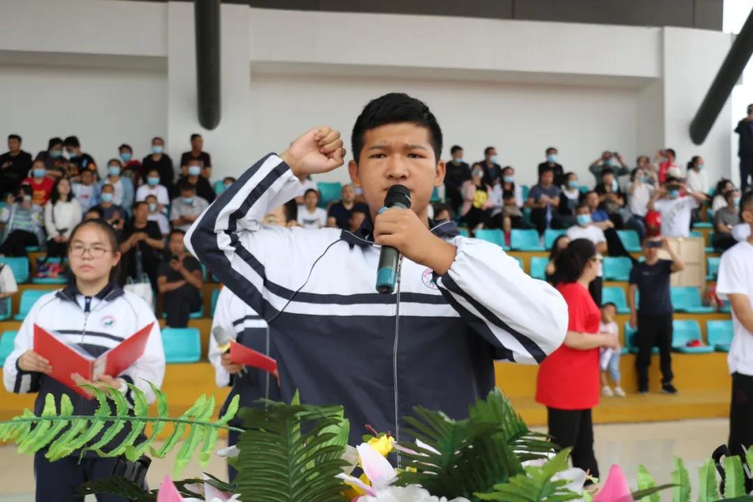 “少年智則國智,少年富則國富;少年強(qiáng)則國強(qiáng),少年獨(dú)立則國獨(dú)立……”激昂奮進(jìn)的聲音在北校區(qū)的操場上空回響,在全體高三學(xué)生《少年中國說》激情澎湃的誦讀聲中,本次大會(huì)正式開始。莊嚴(yán)的升旗儀式后,學(xué)生代表、教師代表和家長代表依次獻(xiàn)詞:好友同窗與共的奮斗時(shí)光,老師日復(fù)一日的悉心陪伴,父母無私無盡的付出關(guān)愛,在一句句溫情感人的獻(xiàn)詞中歷歷浮現(xiàn),激蕩心靈。