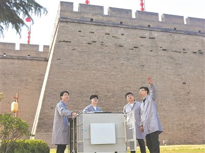 圖為蘭州大學(xué)稀有同位素前沿科學(xué)中心的核技術(shù)創(chuàng)新與產(chǎn)業(yè)化團(tuán)隊(duì),基于宇宙射線繆子成像設(shè)備對西安城墻進(jìn)行體檢。 受訪者供圖