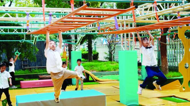 早在今年兒童節(jié)前夕,這套設(shè)備就已經(jīng)安裝完畢,孩子們特別喜歡室外的這套設(shè)施?!拔覀儗⑦@套硬核體能課程在暑假班實(shí)施的打算跟家長(zhǎng)溝通過,大家都很支持。”王艷表示,室外課程一般安排在早晨或雨后比較涼快的時(shí)候,大部分訓(xùn)練以室內(nèi)課為主。