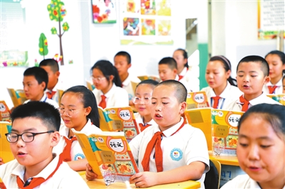 敦煌市東街小學(xué)學(xué)生在課堂上誦讀《涼州詞》。中國教育報(bào)記者 尹曉軍 攝