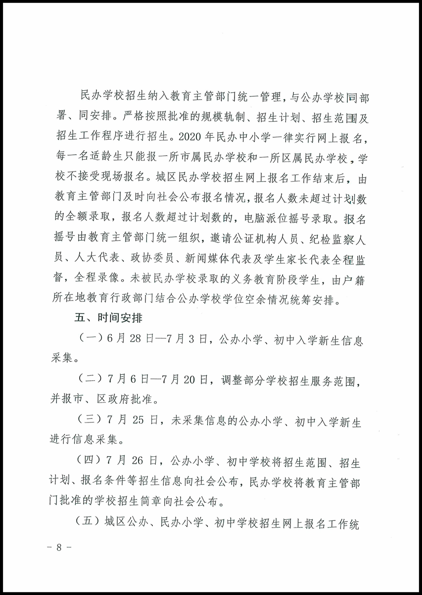 城區(qū)公辦、民辦小學(xué)、初中學(xué)校招生網(wǎng)上報(bào)名工作統(tǒng)一從8月1日上午8:00開(kāi)始,8月4日18:00截止。
