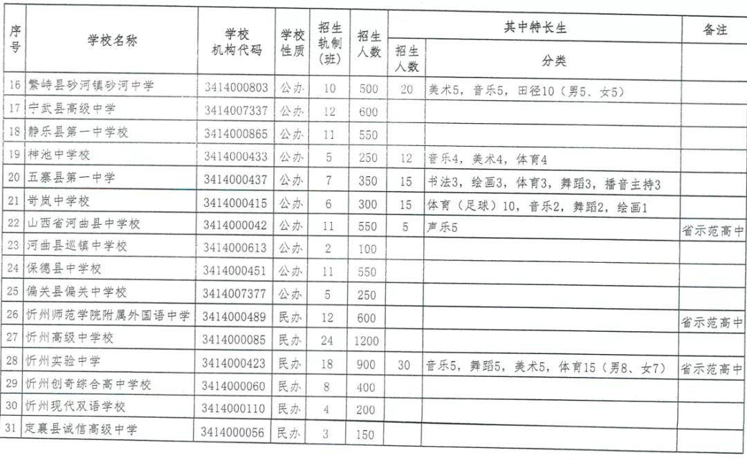 附件:1.忻州市2020年普通高中學(xué)校分校招生計(jì)劃