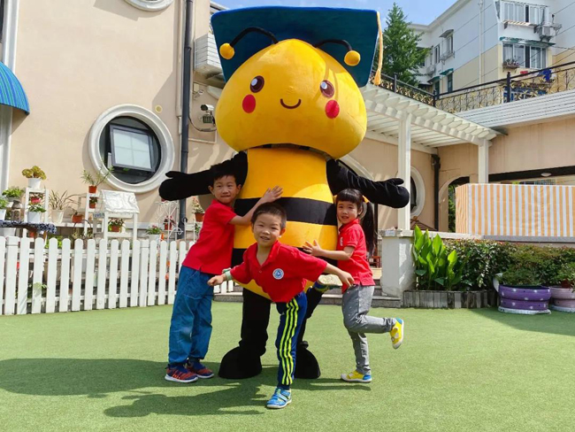 小育走進徐匯區(qū)梅隴幼兒園,和萌萌噠小盆友比心(小育扮演者:趙旭華 攝影:宿銘珊)