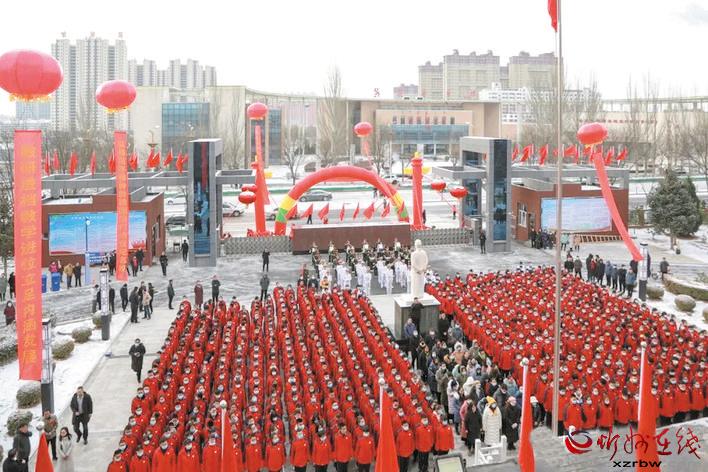 本報(bào)訊 近日,雪后的范亭中學(xué)彩門(mén)高懸,紅旗飄揚(yáng),軍樂(lè)高奏,鑼鼓喧天,校園提質(zhì)改造一期工程竣工典禮儀式在學(xué)校將軍廣場(chǎng)隆重舉行。