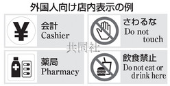 日本經(jīng)濟(jì)產(chǎn)業(yè)省出臺有關(guān)店內(nèi)標(biāo)識的指南,要求盡量使用英語、圖形符號及漢字。(共同社)