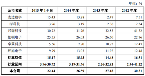 招股書(shū)顯示,易德龍負(fù)債水平偏高,流動(dòng)負(fù)債占比超過(guò)95%,面臨較大的短期償債風(fēng)險(xiǎn)。而除了償債風(fēng)險(xiǎn)外,公司主營(yíng)業(yè)務(wù)毛利率在報(bào)告期內(nèi)持續(xù)下降,2012年為30.31%,到2015年9月末已降至22.44%,而同時(shí)期內(nèi)行業(yè)銷(xiāo)售毛利率均值基本穩(wěn)定在27%左右。