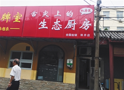 7月25日,北京朝陽(yáng)區(qū)勁松一中南門(mén)西側(cè)的百度生態(tài)廚房雙井店,門(mén)口掛有標(biāo)牌。