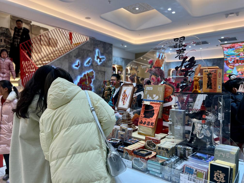 鐘樓步行街文創(chuàng)店內顧客在選購商品。新華社記者馬曉潔 攝