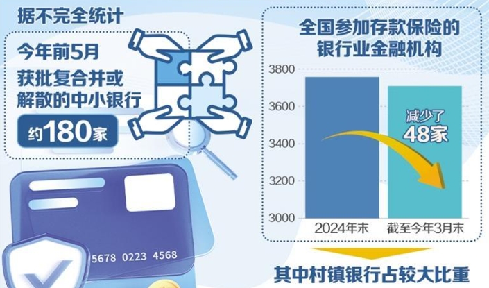 中小銀行是我國(guó)金融體系的重要組成部分,也是推動(dòng)區(qū)域經(jīng)濟(jì)發(fā)展和服務(wù)實(shí)體經(jīng)濟(jì)的生力軍。今年以來(lái),我國(guó)中小銀行改革重組步伐加快,多地的村鎮(zhèn)銀行、農(nóng)商銀行等金融機(jī)構(gòu)被吸收合并重組,將在金融機(jī)構(gòu)名單上加速消失。據(jù)不完全統(tǒng)計(jì),今年前5月,約180家中小銀行獲批復(fù)合并或解散。