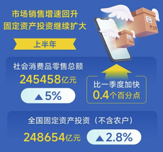 市場銷售增速回升,固定資產(chǎn)投資繼續(xù)擴(kuò)大。上半年,社會消費(fèi)品零售總額245458億元,同比增長5%,比一季度加快0.4個百分點(diǎn)。全國固定資產(chǎn)投資(不含農(nóng)戶)248654億元,同比增長2.8%;扣除房地產(chǎn)開發(fā)投資,全國固定資產(chǎn)投資增長6.6%。