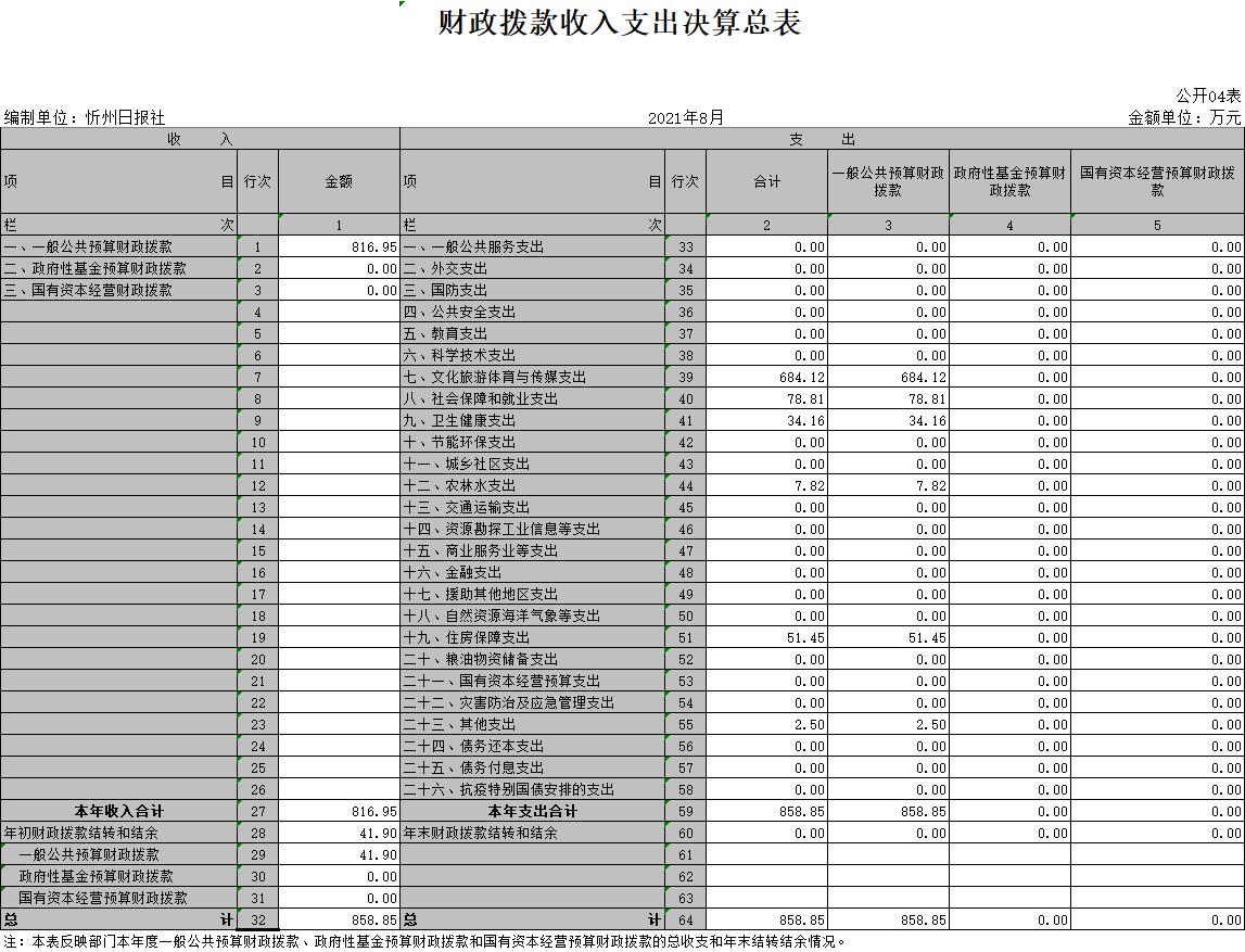 4、2020年財(cái)政撥款收入支出決算總表