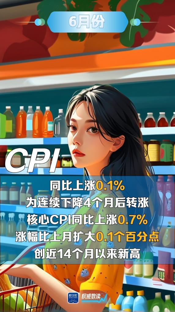 國(guó)家統(tǒng)計(jì)局9日發(fā)布數(shù)據(jù)顯示,6月份,擴(kuò)內(nèi)需、促消費(fèi)政策持續(xù)顯效,居民消費(fèi)價(jià)格指數(shù)同比由上月下降轉(zhuǎn)為上漲0.1%;環(huán)比下降0.1%,降幅比上月收窄0.1個(gè)百分點(diǎn);扣除食品和能源價(jià)格的核心CPI同比繼續(xù)回升,上漲0.7%。工業(yè)生產(chǎn)者出廠(chǎng)價(jià)格指數(shù)環(huán)比下降0.4%,降幅與上月相同。