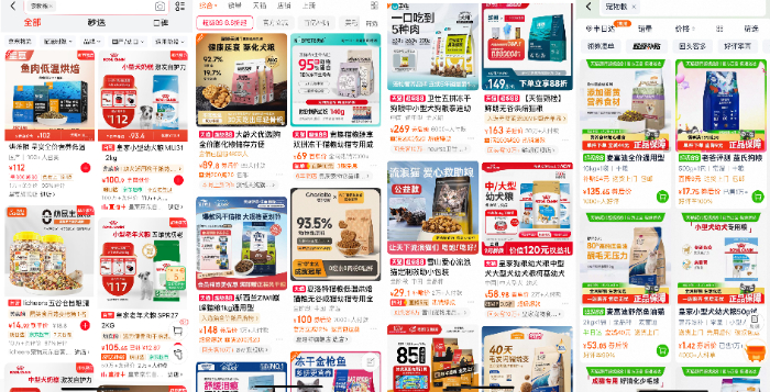 有消費者反映,為給寵物選到合適口糧,需像科研人員一樣仔細研究配料表、檢測報告和價格,以防“踩雷”。部分電商平臺上,寵物糧廣告鋪天蓋地,“高蛋白42%”“凍干鎖鮮”等宣傳語令人眼花繚亂,難以抉擇。