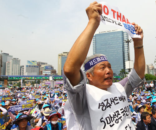 韓國民眾舉行集會反對部署“薩德”系統(tǒng) 。新華社記者 姚琪琳 攝