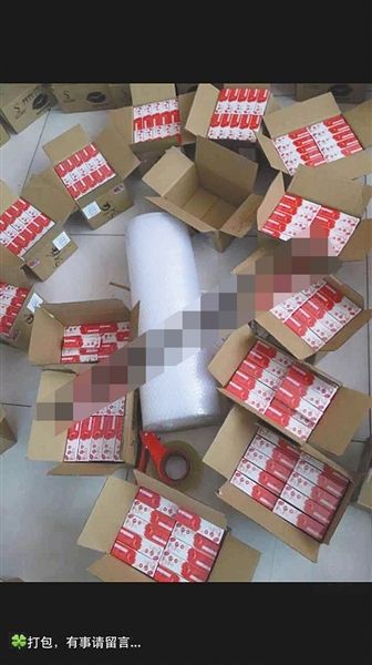 面膜代理商朋友圈中曬出的快遞單及待發(fā)貨物,營(yíng)造出微商很忙很賺錢的樣子。