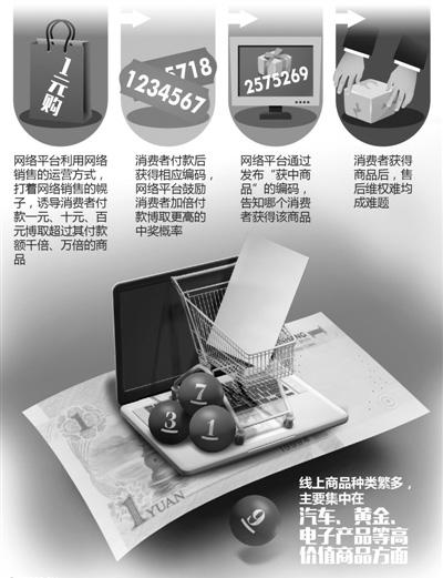 網(wǎng)站將商品價(jià)格平分成若干等份,一元一份,消費(fèi)者購買一份或多份后,等待“幸運(yùn)號碼”揭曉
