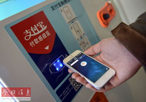 資料圖:一名支付寶員工在演示手機(jī)支付流程。