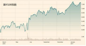 與一年前的低點相比,富時100指數(shù)漲幅超過30%。(英國《金融時報》網(wǎng)站)