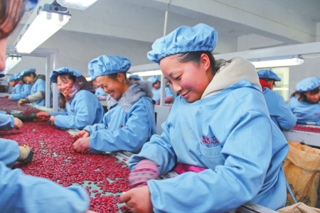 “這是我們公司最暢銷(xiāo)的紅蕓豆罐頭,即開(kāi)即食,顆粒碩大,色澤紅艷,很受北京、上海等大城市白領(lǐng)歡迎?!痹卺硩咕G祥源生態(tài)農(nóng)業(yè)有限公司成品車(chē)間,總經(jīng)理呂杰邊走邊介紹,紅蕓豆蛋白質(zhì)含量豐富,氨基酸種類(lèi)齊全,特別是含有兒童生長(zhǎng)發(fā)育所需組氨酸,是一款能提供較全面營(yíng)養(yǎng)的理想食品。