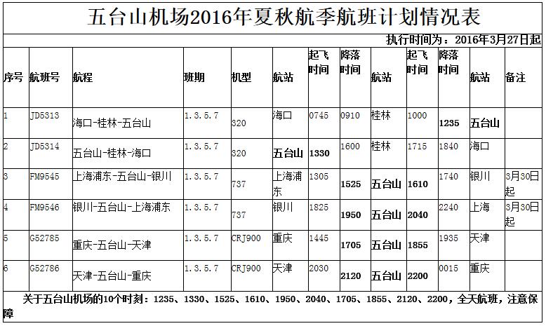 五臺(tái)山機(jī)場(chǎng)2016年夏秋機(jī)場(chǎng)巴士 運(yùn)營(yíng)時(shí)間及航季航班計(jì)劃情況 |