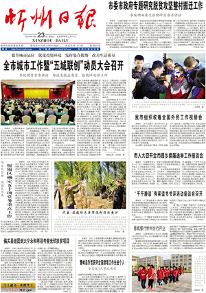 4月22日,忻州市召開會議,動員全市開展“五城聯(lián)創(chuàng)”工作。提出了要以建設(shè)宜居忻州、造福人民群眾為目的、以“創(chuàng)衛(wèi)”為基礎(chǔ)、以“創(chuàng)園”為重點的創(chuàng)建國家衛(wèi)生城市、省級園林城市、國家環(huán)保模范城市、省級智慧城市、省級文明城市。同時宣布成立了“五城聯(lián)創(chuàng)”總指揮部,全面推進了“五城聯(lián)創(chuàng)”工作。9月2日和12月9日,我市相繼召開忻州城區(qū)創(chuàng)建國家衛(wèi)生城市大會和再動員大會,對創(chuàng)衛(wèi)工作再部署、任務(wù)再明確,進一步動員市、區(qū)各級各部門提高認識,明確責任,強化措施,狠抓落實,確保城區(qū)順利創(chuàng)建國家衛(wèi)生城市。目前中心城區(qū)創(chuàng)建國家衛(wèi)生城市通過專家暗訪,14個縣(市、區(qū))實現(xiàn)創(chuàng)衛(wèi)全覆蓋,全省唯一。中心城區(qū)和原平、五臺、寧武、岢嵐創(chuàng)建省級園林城市通過省考核驗收,數(shù)量全省第一。加強大氣污染防治,全年二級以上天氣同比增加9天,是全省完成年度目標任務(wù)的3個市之一。(2016年4月23日《忻州日報》)
