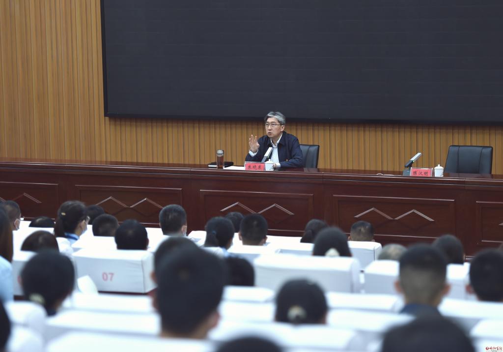 朱曉東圍繞知古鑒今立大志、讀書明理識(shí)春秋、少年心事當(dāng)拏云、崇德向善行得正、薪火相傳廣燎原、厚植情懷立新功六個(gè)方面,緊密結(jié)合歷史和現(xiàn)實(shí),緊扣國際、國內(nèi)局勢(shì)和我省、我市發(fā)展形勢(shì),以典型生動(dòng)的事例和深入淺出的講解引導(dǎo)青年學(xué)子自覺肩負(fù)起時(shí)代責(zé)任和歷史使命,努力在新征程上奮勇爭(zhēng)先、建功立業(yè)。他說,透過人類發(fā)展史、中華民族文明史,特別是中國共產(chǎn)黨的百年奮斗歷史,深刻認(rèn)識(shí)到青年的命運(yùn)從來都同時(shí)代緊密相連,青年始終在人類進(jìn)步、國家富強(qiáng)、民族復(fù)興、人民幸福的征程中扮演著排頭兵的角色。人類社會(huì)進(jìn)步,離不開青年的引領(lǐng)。救亡圖存時(shí)代,離不開青年的覺醒。革命戰(zhàn)爭(zhēng)年代,離不開青年的犧牲。和平建設(shè)時(shí)期,離不開青年的開拓。進(jìn)入中國特色社會(huì)主義新時(shí)代,更離不開青年的拼搏奮斗。忻中學(xué)子要形成正確的讀書觀,常思“為何讀書”“讀什么書”“怎樣讀書”“怎樣用書”“如何拓展”,進(jìn)一步積累知識(shí)、打開格局和拓寬眼界。要葆有一股韌勁、一股朝氣,對(duì)想做愛做的事敢試敢為,敢于做先鋒,不做過客,不當(dāng)看客,不貪圖安逸,不懼怕困難,不怨天尤人,為青春搏擊,為國家出力,為人民奉獻(xiàn)。要久久為功錘煉道德、培養(yǎng)情操,始終牢記“人生的扣子從一開始就要扣好”,始終牢記“飲水思源,懂得回報(bào)”,始終牢記“崇尚科學(xué),追求真理”。要傳承好忻中人的紅色基因、追求卓越、赤子之心,接好前人的“精神火把”,用奮斗之光照亮后來之人。