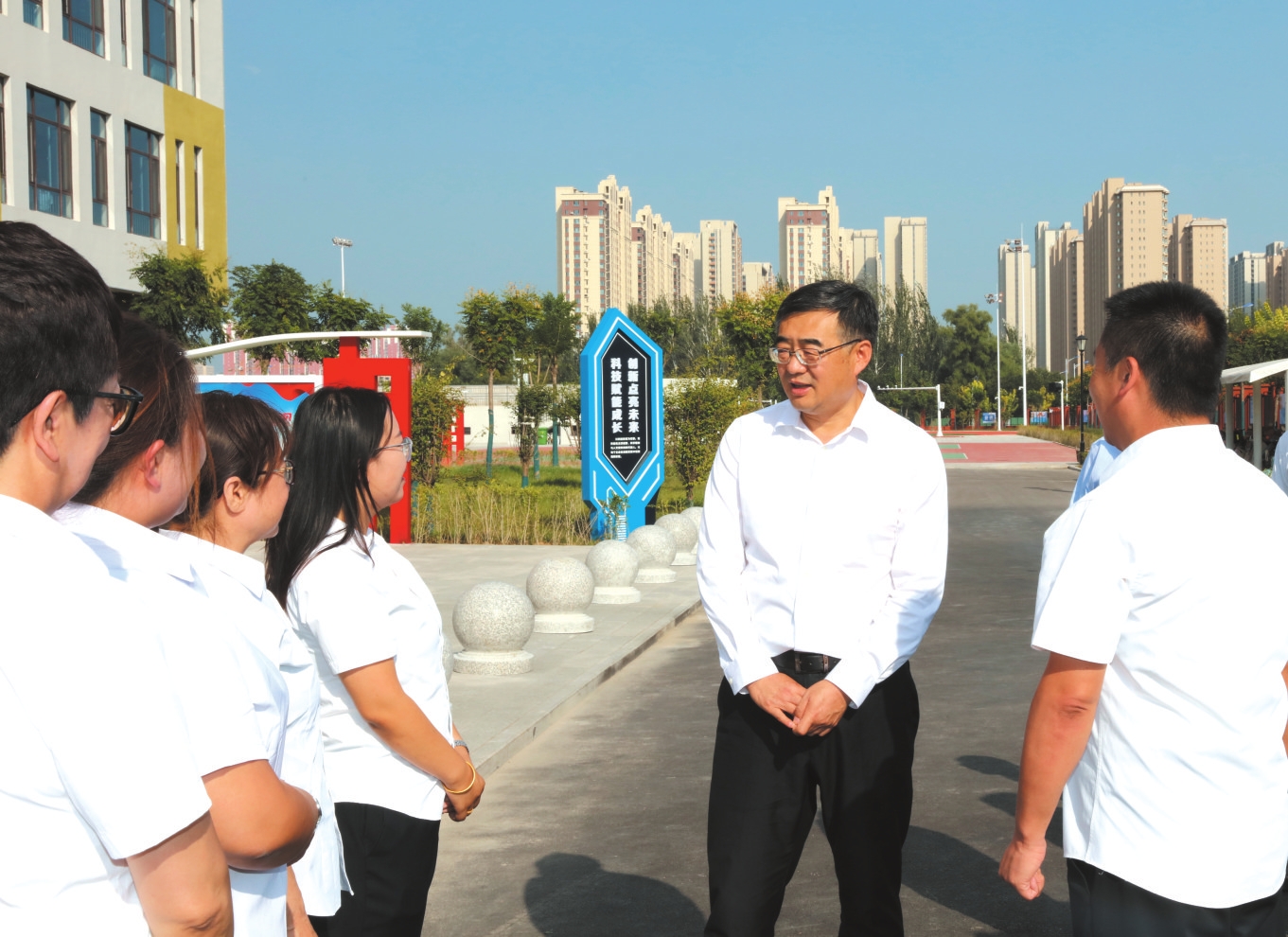 經(jīng)過幾年來在教育領(lǐng)域的連續(xù)投入,我市的學(xué)校布局優(yōu)化、校舍新建改造、設(shè)施更新提升、教師人才充實等工作成效逐步顯現(xiàn),一批新校園、新校舍、新設(shè)施等紛紛啟用,成為忻州高質(zhì)量發(fā)展的潛力所在。李建國一行在各個學(xué)??赐繂栆痪€教師職工,察看改造中或已啟用的操場、建成啟用的教學(xué)樓和多功能教室等設(shè)施,耐心詢問新校區(qū)教師的切身感受、通勤等工作生活情況,詳細了解學(xué)校的服務(wù)半徑、師資力量、薪酬待遇等情況,感謝廣大教師扎根三尺講臺、傳道授業(yè)解惑,引導(dǎo)一屆屆學(xué)生樹立崇高理想和遠大志向,為忻州教育事業(yè)作出的無私奉獻。