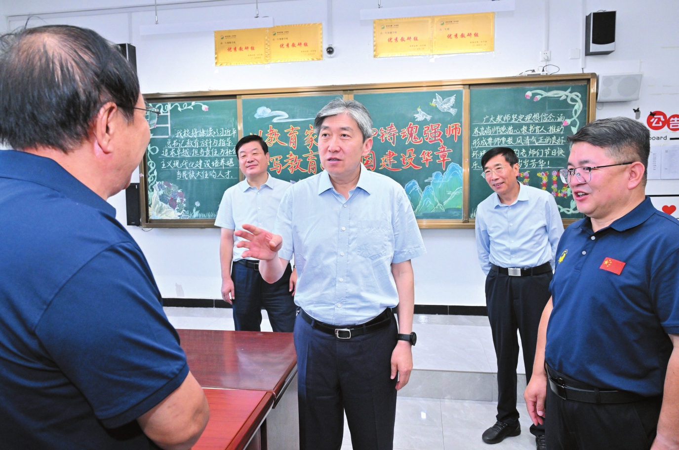 市委副書記、市長李建國在忻州市第五中學(xué)慰問一線教師。本報記者范濤攝