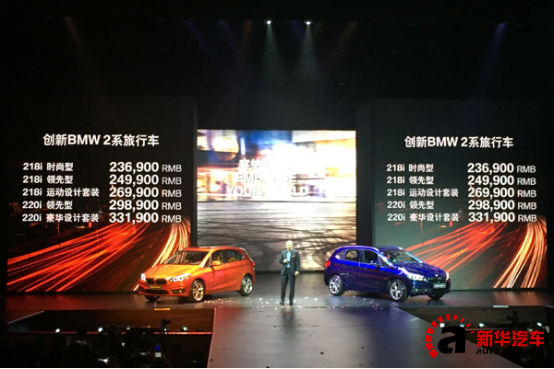 華晨寶馬汽車有限公司總裁兼首席執(zhí)行官海森博士在發(fā)布會上表示:“創(chuàng)新BMW 2系旅行車加入國產(chǎn)陣營標(biāo)志著華晨寶馬本土化進程的又一里程碑,它定位精準,緊隨中國市場新的消費趨勢。創(chuàng)新BMW 2系旅行車采用創(chuàng)新的理念,將BMW特有的駕駛樂趣和我們品牌前所未見的多功能性相結(jié)合,再次證明了BMW以客戶為導(dǎo)向、提供多樣化產(chǎn)品的發(fā)展理念?!?/p>
