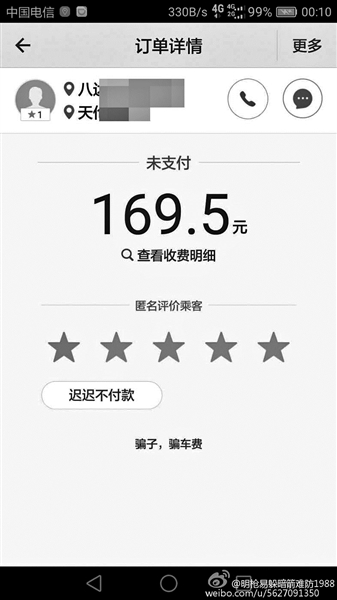 在某網(wǎng)站論壇上,一名順風(fēng)車司機(jī)爆料說,晚上下班后接了一單滴滴順風(fēng)車,想著反正順路,上班路上接一單抵個油費也是好的。送到目的地后,自己出于習(xí)慣讓乘客先下車后付款,沒想到對方是用小號注冊的滴滴賬戶,晚飯后再打電話已經(jīng)是“空號”。“這顯然是惡意打霸王車啊?!?/p>