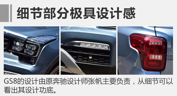 GS8的設(shè)計由原奔馳設(shè)計師張帆操刀,在內(nèi)飾部分也較為洞察國內(nèi)消費者的喜好。車內(nèi)整體寬敞舒適,顏色采用偏暖的木色,打造一種家用溫馨感??臻g方面,GS8的長寬高分別為4810*1910*1770毫米,軸距2800毫米,采用7座布局。
