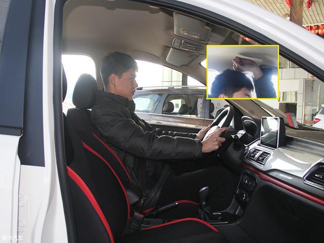 模特身高183cm,坐進(jìn)駕駛位,將座椅位置調(diào)至最低,頭部還有一拳左右的余量。