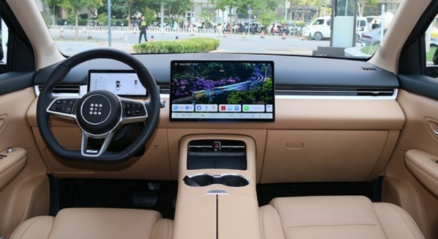 動力方面,藍電E5 PLUS搭載賽力斯超級電混系統,由1.5L發(fā)動機+DHT330電驅組成的動力組合,電機最大功率160kW,最大扭矩330N·m,0-100km加速時間僅為7.8s。續(xù)航方面,入門車型純電續(xù)航就達到100km,長續(xù)航版車型CLTC最高純電續(xù)航里程達165km,CLTC工況下綜合續(xù)航里程可達1300km,百公里饋電油耗4.9L。值得一提的是,藍電E5 PLUS還配備了FSD懸架自適應調節(jié)系統。(圖/文 網通社 杜金翼)