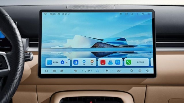 藍電E5 PLUS搭載HUAWEl HiCar4.0科技智能座艙,15.6英寸大尺寸懸浮式中控屏幕整體UI設計十分用心,下方Dock欄設計可根據需求,隨心更換,使用起來也是絲般順滑。并且,還提供了愛奇藝、喜馬拉雅等第三方軟件。