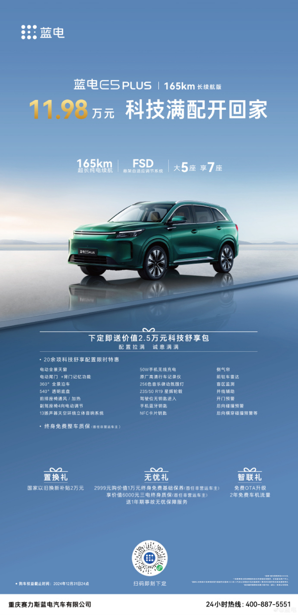 特別是在主銷車型上,藍(lán)電E5 PLUS 165長續(xù)航版搭配2.5萬元科技舒享包,11.98萬元的價格,不僅極具競爭力,更在性能、配置和續(xù)航上全面領(lǐng)先。與同級車型相比,藍(lán)電E5 PLUS在保持高性價比的同時,還提供了更加豐富的配置和更加出色的駕駛體驗(yàn)。這種獨(dú)到的價格策略,使得藍(lán)電E5 PLUS在市場中脫穎而出,上市25天定單破萬,11月10日全面開啟交付以來,累計交付超5000臺,成為了消費(fèi)者心目中的性價比之選。