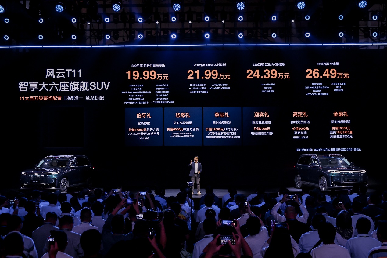 10月13日,以“兌現(xiàn)”為主題的風云T11家庭品鑒日暨預售發(fā)布會在安徽蕪湖圓滿收官。作為風云品牌煥新后的首款旗艦級SUV,風云T11定位為“智享大六座旗艦SUV”。新車以“頂格對標”為理念,憑借“超大更好”四大核心價值、三大沉浸式場景與11大全系標配,兌現(xiàn)用戶對品質(zhì)生活的全維期待。
