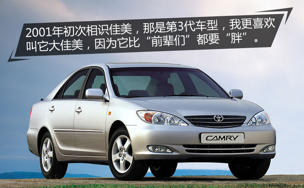 說起來,筆者與凱美瑞應該算是“老熟人”了,最初的緣分要回憶到上初中的時候,那時候凱美瑞還是進口車,那時候他被人們稱作“佳美”。2001那年筆者在念初三(額~~一不小心暴露了年齡),姑姑家買了一輛銀灰色的豐田佳美,那時候還不太懂車,只知道能坐上30多萬的車是一件非常值得吹牛逼的事情。