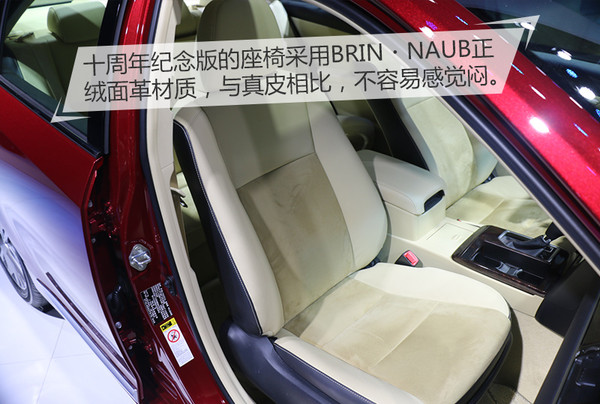 十周年紀念版凱美瑞將原本就已經(jīng)是真皮包裹的座椅更換了“新裝”,采用了最新研發(fā)的BRIN?NAUB材質(zhì)的正絨面革。與真皮材質(zhì)相比,這種全新的材料不容易有悶的感覺,夏天的時候不會越坐越熱。冬天的時候,剛坐進車里也不會感覺特別涼,這樣直接省去了再配坐墊的麻煩。BRIN?NAUB材質(zhì)還具有更好的彈性和延展性,長期坐壓之后不易變形。