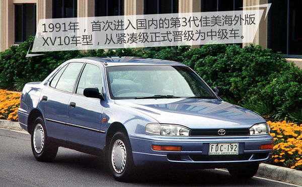 在5代之前,最先進口引入國內(nèi)的是第3代佳美,這是非常具有歷史意義的一代車型,不但正式確立了佳美在豐田“全球車”陣營中的主力位置,還順帶打開了中國市場。首次進入國內(nèi)市場的是第3代佳美(1991-1996)針對海外市場推出的XV10車型,與日本本土的V30不同,XV10從一輛緊湊級轎車“成長為”一輛B級車。