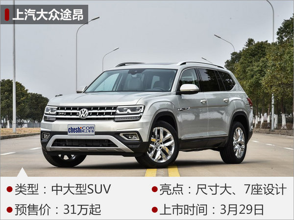 上汽大眾于2016年廣州車展發(fā)布了定位更高的中大型全新SUV-途昂(Teramont),新車將于今年3月29日正式上市。外觀上,新車采用全LED光源前大燈組、“W”型的日間行車燈,并與進氣格柵連為一體。內(nèi)飾配置方面,新車擁有1.18平方米全景天窗、自適應巡航、駕駛模式選擇、12.3英寸液晶儀表等。大眾為途昂配備了2.0T(高/低功率)和2.5T V6渦輪增壓發(fā)動機,其中2.5T發(fā)動機的額定功率可達220kW,峰值扭矩500Nm,并提供四驅系統(tǒng)。