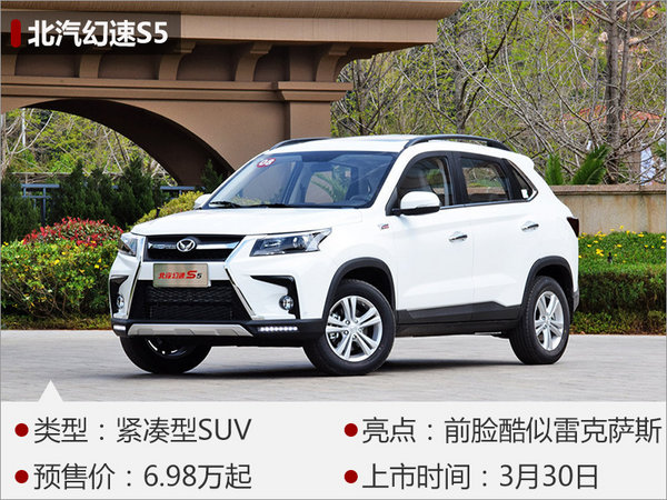幻速S5是北汽集團的一款全新緊湊型SUV,將于3月30日正式上市。外觀方面,新車采用了極具辨識度的北汽幻速家族式前臉(紡錘式),與簡潔的尾部相呼應。內(nèi)飾整體風格簡潔大氣,大尺寸屏幕是整車的亮點配置。北汽幻速S5將搭載1.6L自然吸氣/1.3L渦輪增壓兩款發(fā)動機,全系均匹配5速手動變速箱,其中1.3T發(fā)動機最大功率98kW,峰值扭矩為185Nm。(網(wǎng)上車市 2017年3月27日北京報道)