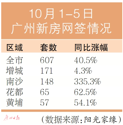 雙節(jié)期間廣州樓市亮點多多。最新數據顯示,雙節(jié)前5天,廣州市新房網簽為607套,同比上漲40.5%,創(chuàng)下近3年同期新高。其中,增城網簽171套,連續(xù)3年蟬聯“冠軍”,南沙、花都、黃埔等成交量均同比上漲超50%。有分析指出,雖然房企不斷加大折扣營銷、渠道合作和造節(jié)活動的力度,但四季度仍面臨較高的去化壓力,預計接下來房企將圍繞“雙11”和年終重大節(jié)點來展開營銷活動,其規(guī)模和折扣的力度均有望擴大,預計年底還會有一波新的成交高峰。