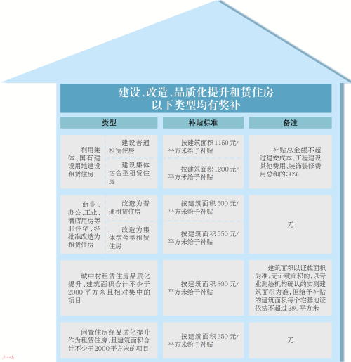 《辦法》提出,為環(huán)衛(wèi)工人、公共交通一線(xiàn)從業(yè)人員等城市重要公共服務(wù)群體提供租賃住房,且租金接受政府指導(dǎo)的,按以下標(biāo)準(zhǔn)給予補(bǔ)貼:新建租賃住房的,按建筑面積1200元/平方米給予補(bǔ)貼;改造租賃住房的,按建筑面積800元/平方米給予補(bǔ)貼;實(shí)施品質(zhì)化提升的租賃住房項(xiàng)目,按建筑面積600元/平方米給予補(bǔ)貼。