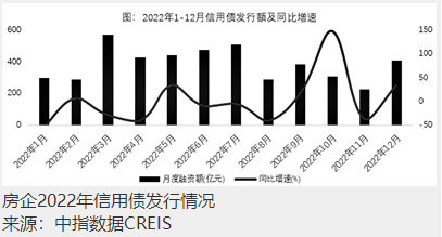 中指研究院近日公布的數(shù)據(jù)顯示,2022年12月,民營房企發(fā)債規(guī)模達(dá)到96.3億元,占全年民營房企信用債發(fā)行量的35.5%,發(fā)行主體也從頭部優(yōu)質(zhì)民企擴(kuò)展到中小型民企。從房企全年單月融資情況來看,3月為年度融資高峰,總量超過千億規(guī)模。下半年,8月、11月均有融資利好政策釋放且快速落地,因此隨后房企融資額小幅回升。其中,優(yōu)質(zhì)民營房企信用債發(fā)行在9月、12月分別出現(xiàn)兩個小高峰。特別是融資利率方面,受2022年內(nèi)多次降息、信貸環(huán)境相對寬松、信托融資規(guī)模下降等多重因素影響,房地產(chǎn)行業(yè)平均融資成本明顯下降。