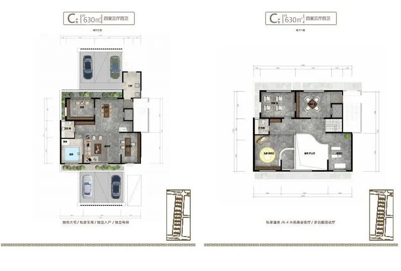 地下室設(shè)計(jì)不同于傳統(tǒng)地下室,只能為儲(chǔ)藏室使用,而小區(qū)地下室層高和地上建筑面積層高一致,達(dá)到了3.2米,沒(méi)有空間壓抑感,在南北庭院都設(shè)有1.2米的通風(fēng)采光井,室內(nèi)鋪設(shè)地暖及溫泉管道,上下水和衛(wèi)生間,私密性特強(qiáng),可以設(shè)計(jì)桑拿房,健身房,保姆間,洗衣房,酒窖及休閑娛樂(lè)等多功能區(qū)域,對(duì)于鄰居既不會(huì)產(chǎn)生噪音干擾,更不會(huì)打擾到家人的休息,在提高了生活品質(zhì)的同時(shí)也不會(huì)由空間局促感,地下室可以直通地下私家車庫(kù),車庫(kù)層高4.2米,寬約7-10米,至少可以容納家用汽車三輛。