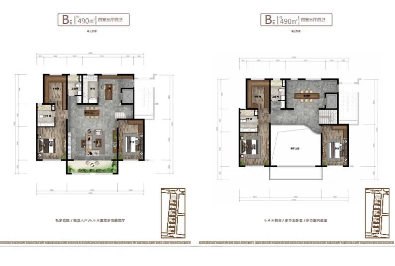 項(xiàng)目主打聯(lián)排疊墅戶型設(shè)計(jì),疊墅是低密度住宅,樓距寬,樓棟密度小,保持有一定的私密性,每戶擁有私家獨(dú)立庭院,及私家花園露臺(tái),庭院入戶,室內(nèi)層高3.2米,每戶設(shè)有私家電梯可以直達(dá)室內(nèi)任一層及空中露臺(tái),地下室和私家車庫(kù)。客廳開(kāi)間6.6米,層高挑空6.4米的設(shè)計(jì)(挑空部分不計(jì)算面積),另外挑空部分可以根據(jù)業(yè)主需求,自行設(shè)計(jì),可以增加一個(gè)約40平米的起居室。