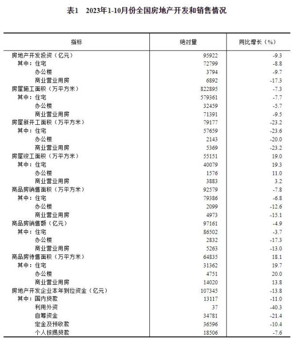 中新網(wǎng)11月15日電 據(jù)國(guó)家統(tǒng)計(jì)局網(wǎng)站消息,國(guó)家統(tǒng)計(jì)公布2023年1—10月份全國(guó)房地產(chǎn)市場(chǎng)基本情況。