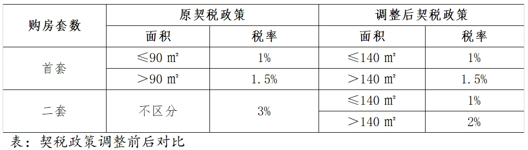 契稅方面,對(duì)個(gè)人購(gòu)買家庭唯一住房(家庭成員范圍包括購(gòu)房人、配偶以及未成年子女,下同),面積為140平方米及以下的,減按1%的稅率征收契稅;面積為140平方米以上的,減按1.5%的稅率征收契稅。對(duì)個(gè)人購(gòu)買家庭第二套住房,面積為140平方米及以下的,減按1%的稅率征收契稅;面積為140平方米以上的,減按2%的稅率征收契稅。