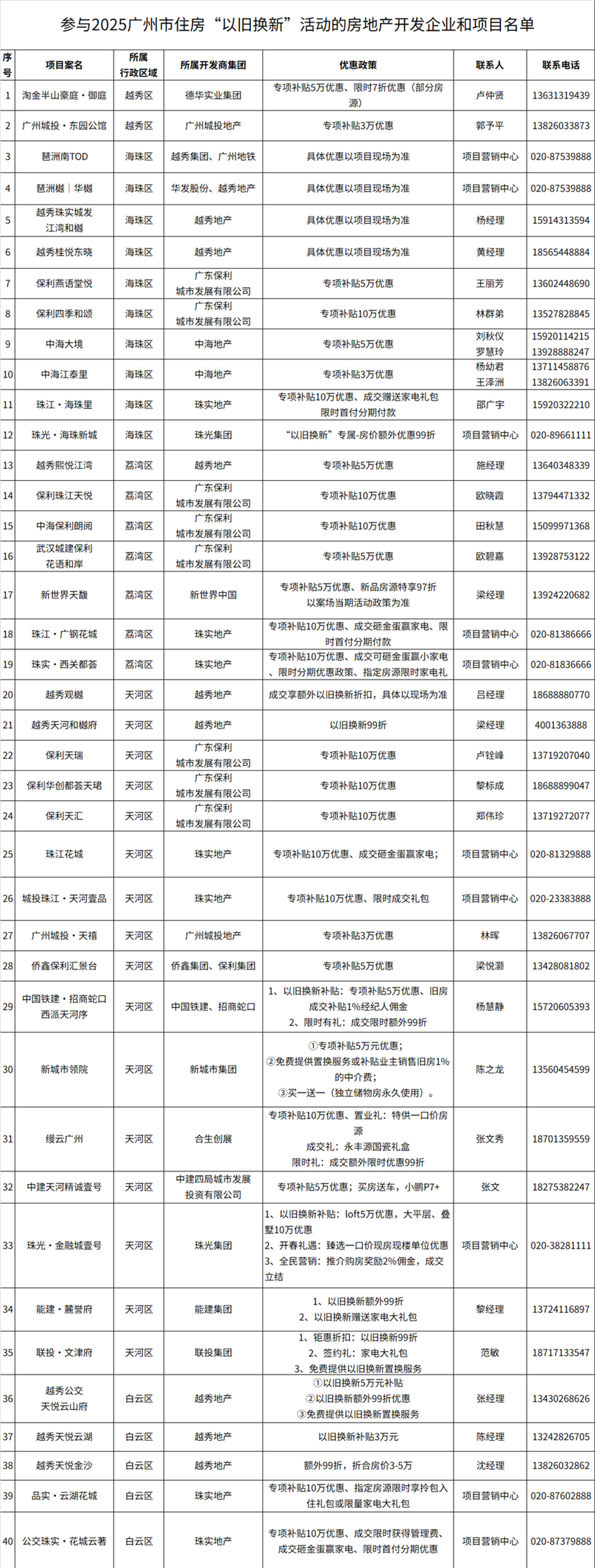 本次活動首批吸引超40家房企、近70個項目參與,覆蓋剛需、改善、高端全產(chǎn)品線,并推出“折上折”“無憂退訂”“家裝大禮包”等疊加優(yōu)惠。廣州市房協(xié)將依托“廣州市房地產(chǎn)行業(yè)協(xié)會”官方微信小程序搭建線上服務平臺,實現(xiàn)房源智能匹配、補貼申領、政策咨詢等功能,進一步優(yōu)化市民換房體驗。