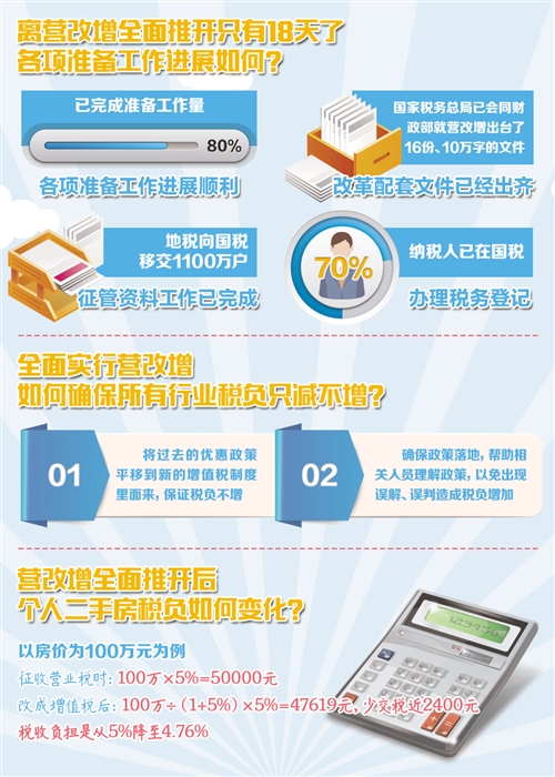 記者:營改增試點涉及范圍廣,改革難度高,離全面推開也只剩不到20天。當前各項準備工作進展如何?